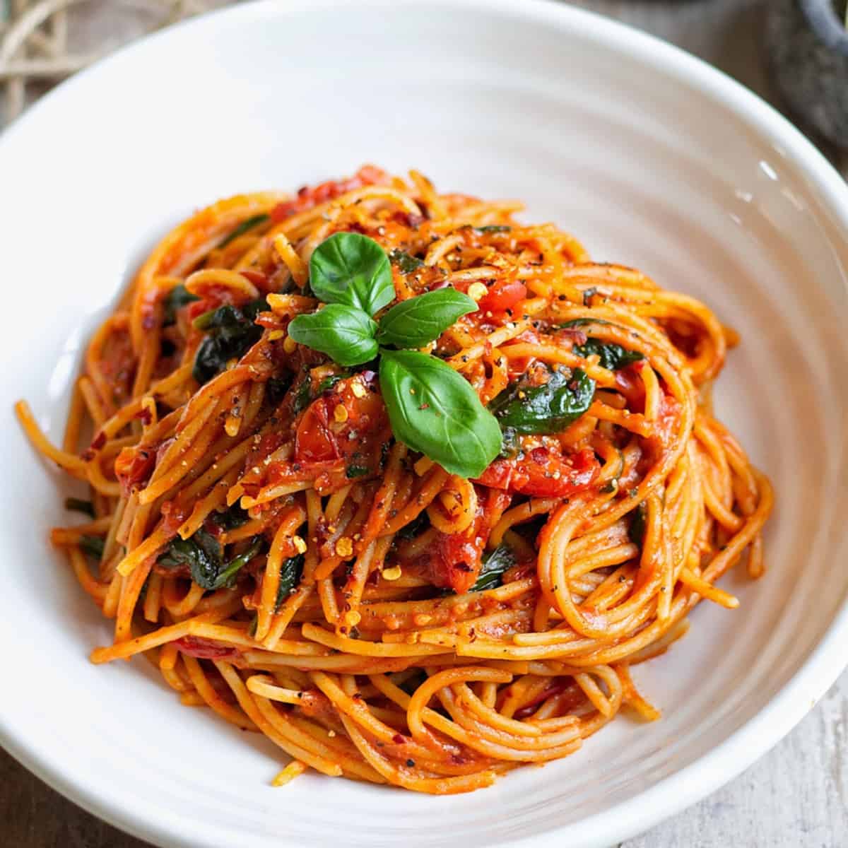 A tomato-based sauce with meat, garlic, olive oil, black pepper onions, and rosemary served with Bread.