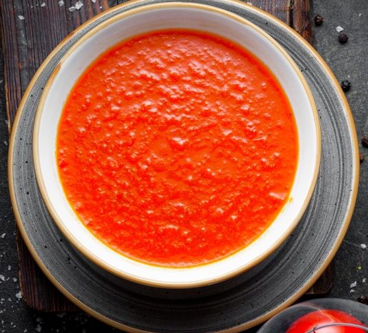 Meat tomato, garlic, olive oil, tomato paste, black pepper, rosemary, Maggi stock, celery, salt, onion ; Served with bread.